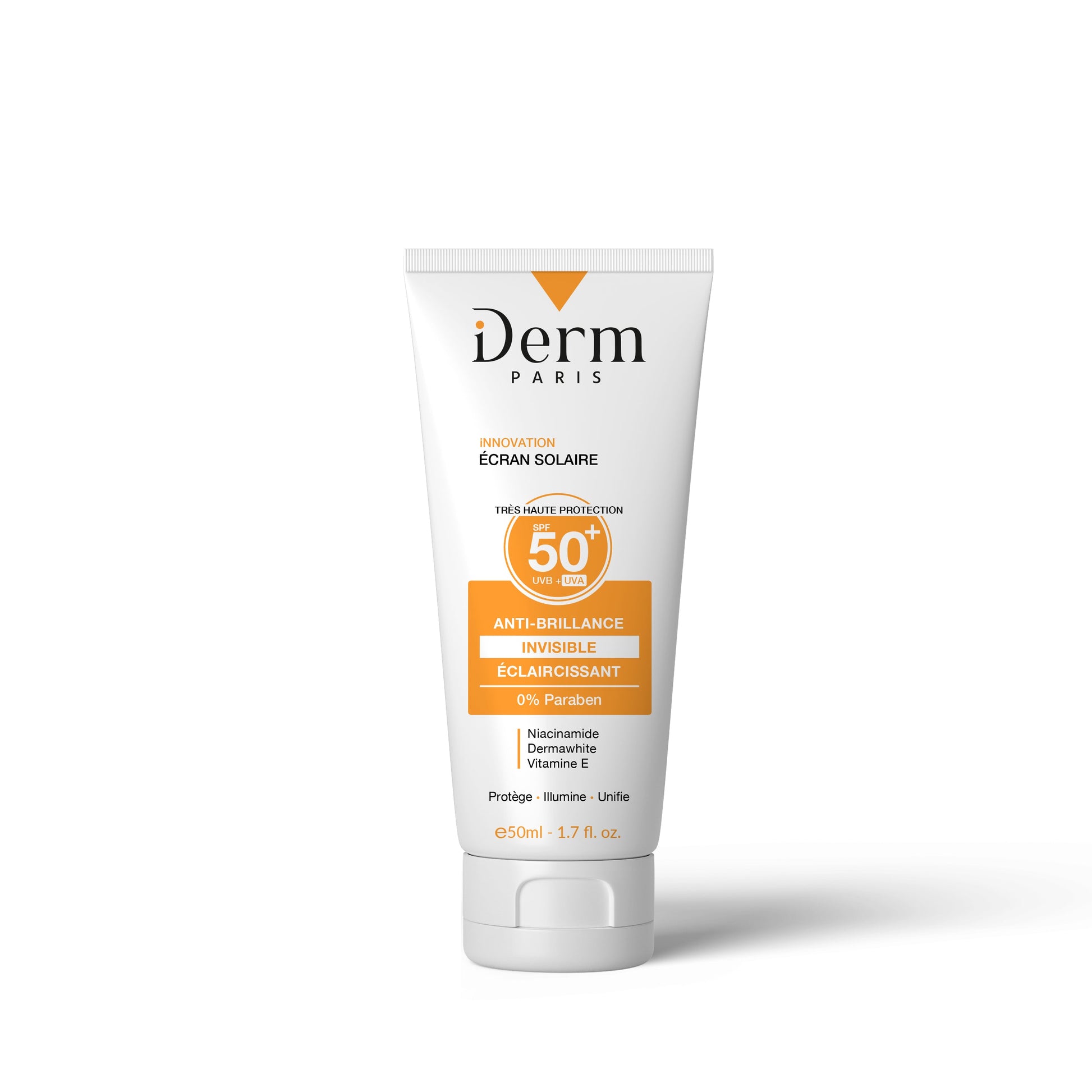 Écran Solaire SPF50+ Invisible Éclaircissant, sans parabène, enrichi en Niacinamide, Dermawhite et Vitamine E. Il protège efficacement contre les rayons UVA et UVB tout en aidant à éclaircir ✨ et unifier le teint. Sa texture légère et invisible offre une protection optimale tout en illuminant et revitalisant la peau.