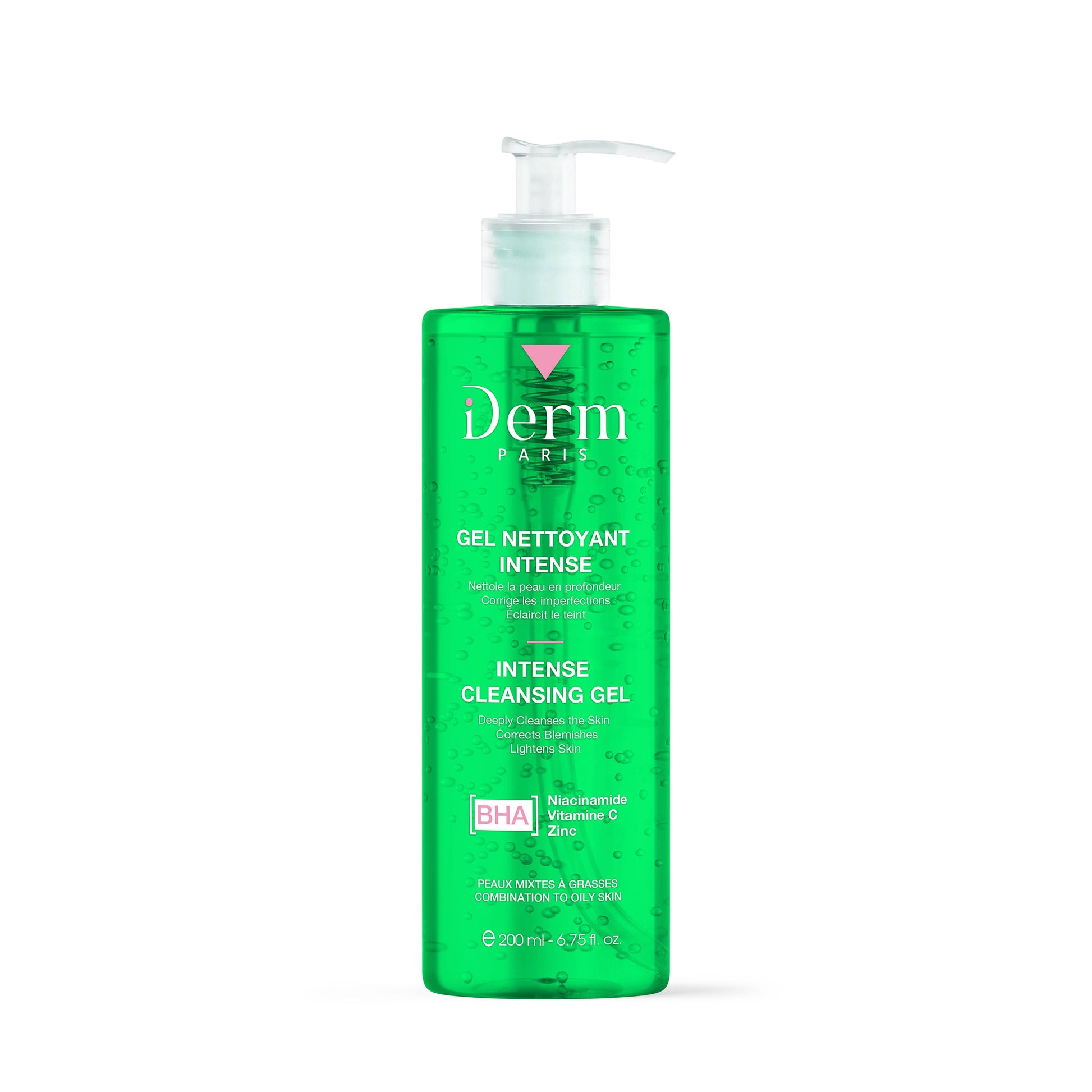Gel Nettoyant Intense, éclaircissant, exfoliant et anti-taches, sans parabène, enrichi en Acide Salicylique, Zinc, Vitamine C et Niacinamide. Conçu pour éliminer les impuretés et l’excès de sébum, corriger les imperfections et unifier le teint ✨, tout en respectant l’équilibre naturel de l’épiderme.