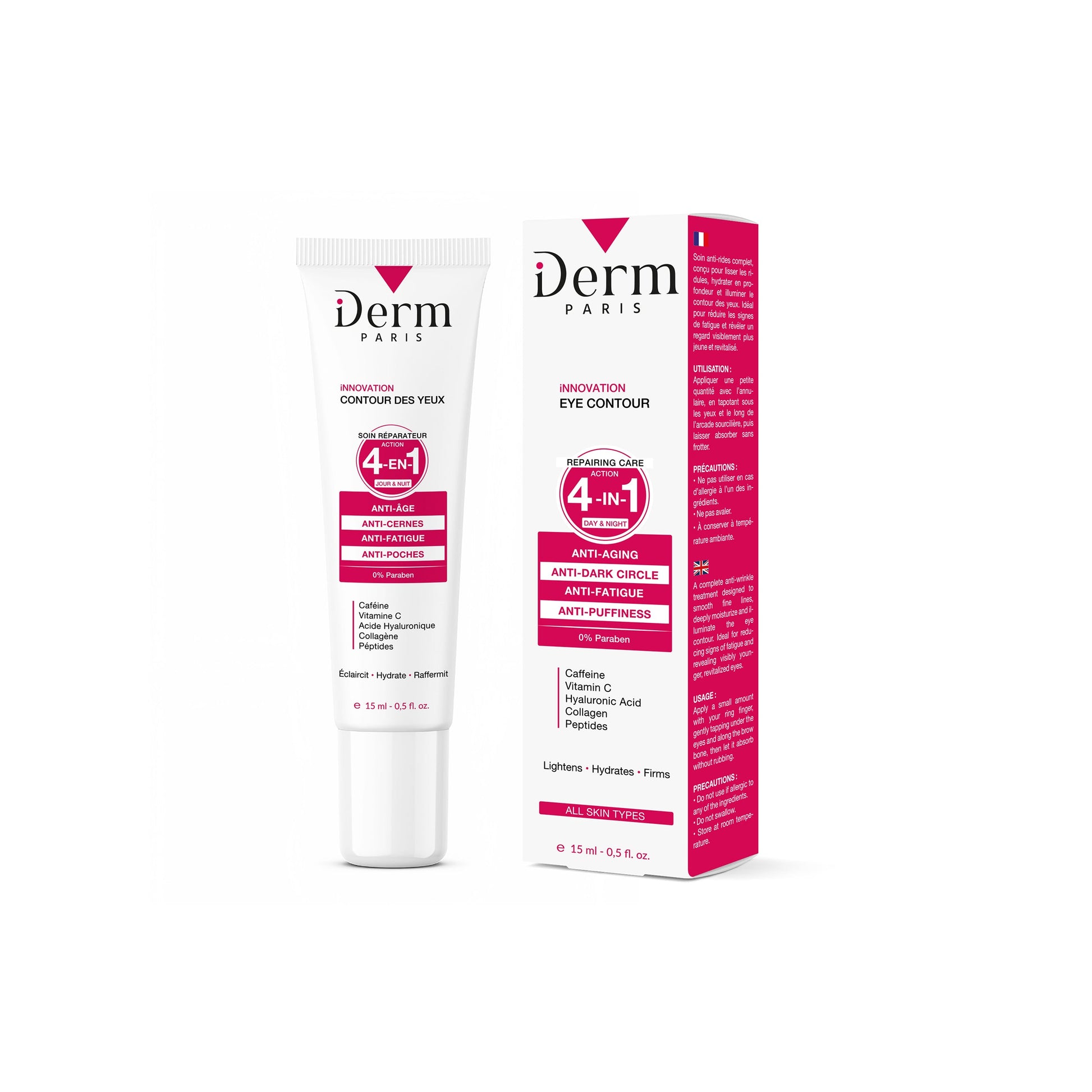 Soin Contour des Yeux 4-en-1, anti-âge, anti-fatigue, anti-poches et anti-cernes, enrichi en Caféine, Vitamine C, Acide Hyaluronique, Collagène et Peptides. Il lisse les ridules, hydrate en profondeur 💧 et illumine le contour des yeux ✨. Idéal pour réduire les signes de fatigue et révéler un regard visiblement plus jeune et revitalisé.